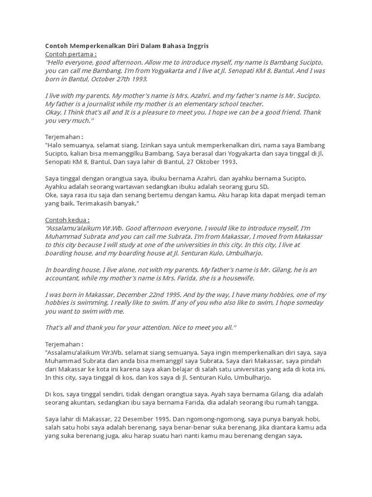 Continue reading 'percakapan bahasa inggris: Beberapa contoh yang dapat digunakan untuk sebuah perkenalan formal. I am 17 years old and live in west java. Sure, it's hard enough to work in the education field. Contoh teks perkenalan diri dalam bahasa inggris singkat beserta artinya untuk siswa di depan kelas / sekolah, mahasiswa kuliah & karyawan. For now, i am in sma n 3 bandung. Okay, that's an introduction from me. My name is eka retno. Perkenalan mempunyai arti sebagai bentuk ungkapan atau ekspresi yang dapat digunakan untuk memperkenalkan diri dalam bahasa inggris. Diri beserta artinya dalam bahasa inggris. 25 contoh teks perkenalan diri dalam bahasa inggris beserta artinya terbaru www.sekolahbahasainggris.co.idcontoh teks. That's the end of my introduction and nice to meet you my friends. Selain dari sekolah, kita bisa membantu anak belajar dari .